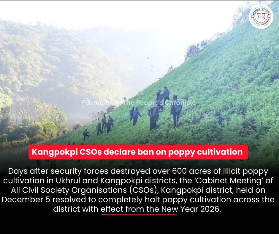 The CSOs said that the decision was taken in the larger public interest, citing the adverse social, environmental, economic and moral consequences associated with poppy cultivation, and described it as a reflection of the collective will of the people of Kangpokpi district.