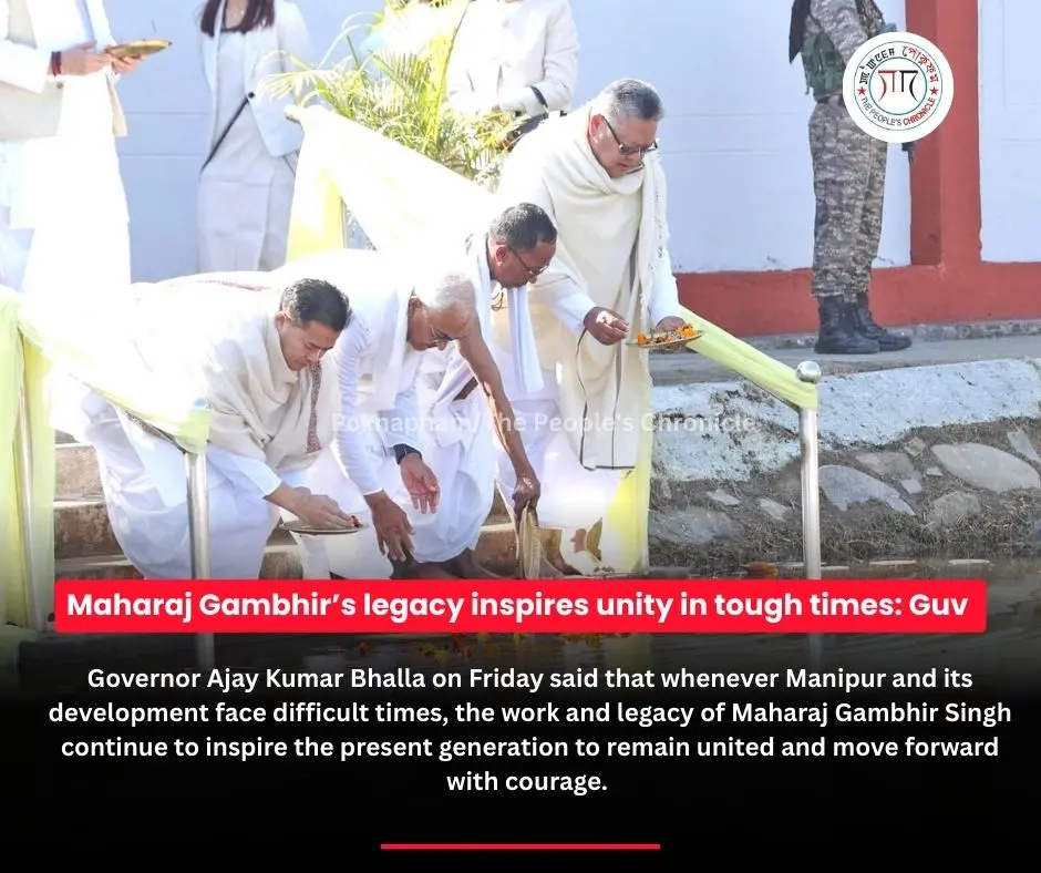 IMPHAL: Governor Ajay Kumar Bhalla on Friday said that whenever Manipur and its development face difficult times, the work and legacy of Maharaj Gambhir Singh continue to inspire the present generation to remain united and move forward with courage.